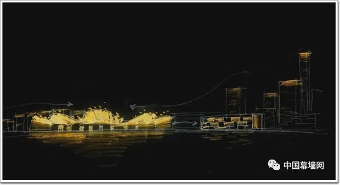 燈光核心概念草圖/鐘鳴整體照明規(guī)劃策略從整體創(chuàng)新區(qū)的宏觀思路出發(fā),以規(guī)劃特色,建筑基因為本體,通過燈光發(fā)揮出夜間特有面貌。特別是對大劇院,美術館,會展,以及周邊配套商業(yè)等業(yè)態(tài)從交融共生互動方面出發(fā),讓光成為紐帶,成為爆發(fā)點。