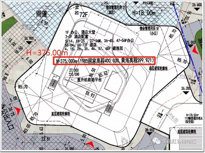 2021年11月1日,是個(gè)好日子!等了很多年,南昌平安金融中心項(xiàng)目《建設(shè)工程規(guī)劃許可證》批前公示終于對(duì)外發(fā)布!南昌平安金融中心項(xiàng)目的最終建筑高度也隨之浮出水面,建筑高度375米(1985國(guó)家高程400.000,黃海高程399.971),但卻未提及女兒墻的高度,甚是奇怪,女兒墻能夠破400米,至關(guān)重要!