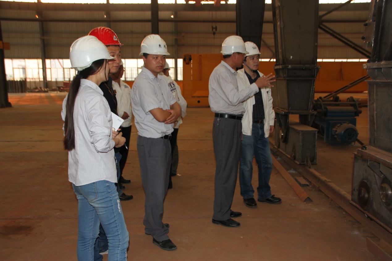 2015年10月14日,中國(guó)船基社洛陽(yáng)分社賈處長(zhǎng)、設(shè)備監(jiān)察馬工等一行五人來(lái)河南東起機(jī)械有限公司考察江南造船起重機(jī)項(xiàng)目。河南東起副總經(jīng)理王滄修、工程師王宏斌、質(zhì)檢部長(zhǎng)李曉寧,項(xiàng)目負(fù)責(zé)人黃夢(mèng)娟等接待,并就此項(xiàng)目工作的開(kāi)展情況做了專題匯報(bào)。